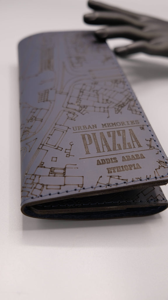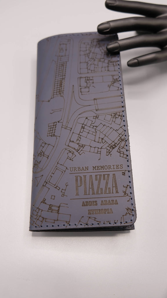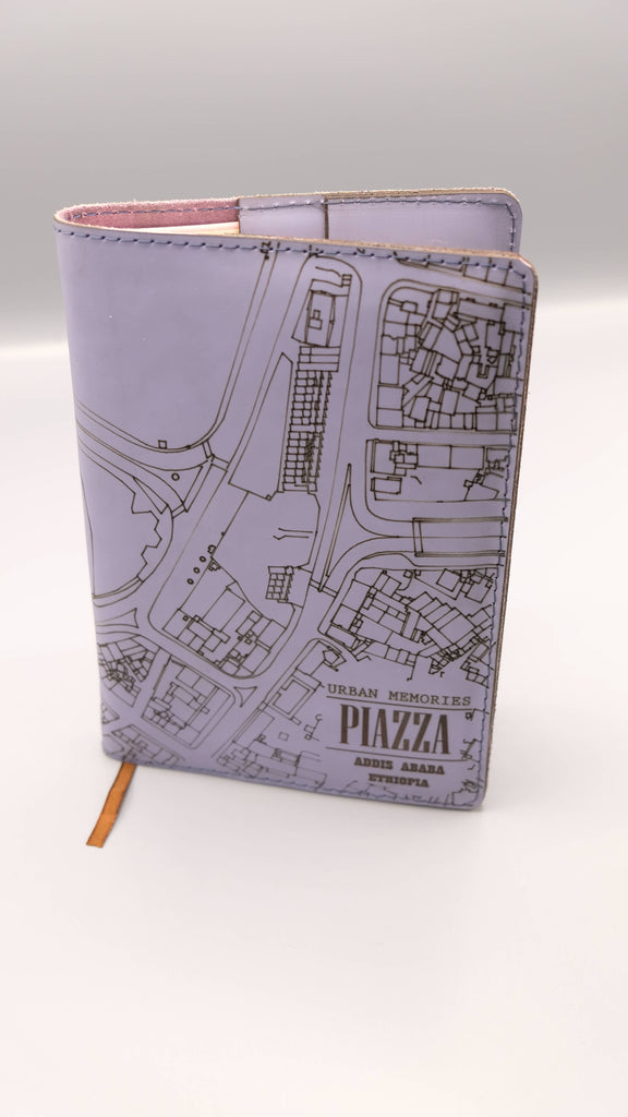 Indulge in luxury with the Urban Memories Leather Notebook Cover and Wallet. Handcrafted in Ethiopia from smooth 100% leather, this artistic cover features a brilliant design and a map of the historic district of Piassa in Addis Ababa. Not just a notebook cover, it's also a multipurpose wallet for all your essentials. Elevate your style with this exclusive piece.