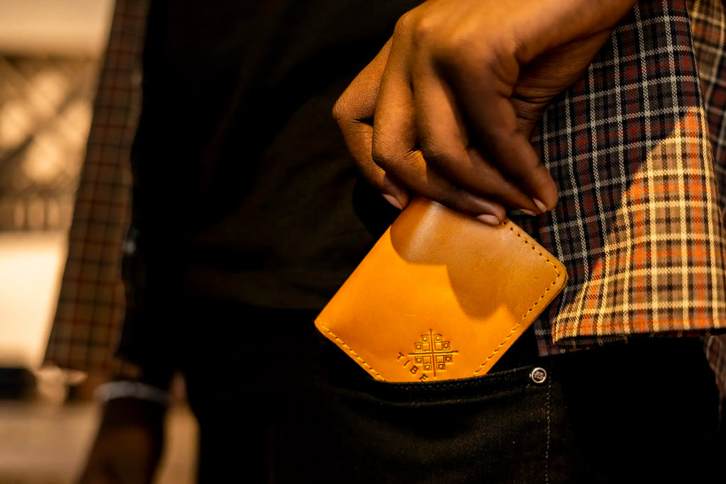 Upgrade your everyday essentials with Tibeb - Premium and Compact Leather Wallet. Handmade in Ethiopia, this compact wallet is the perfect accessory. It features thoughtful inside pockets, making it ideal for storing cards, IDs, money, and more. Give the gift of style and functionality with Tibeb.