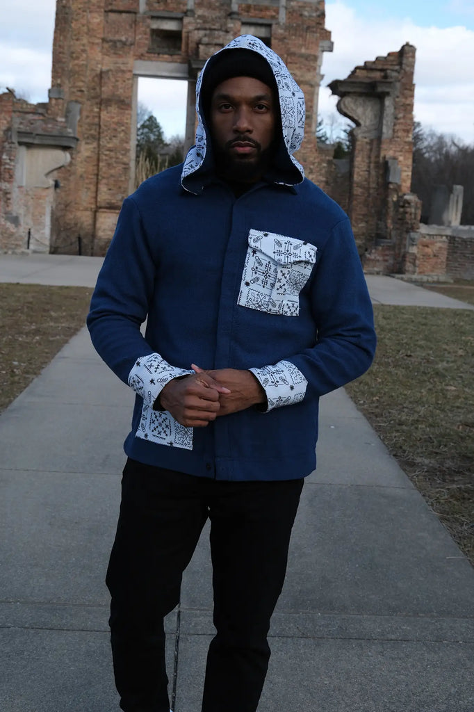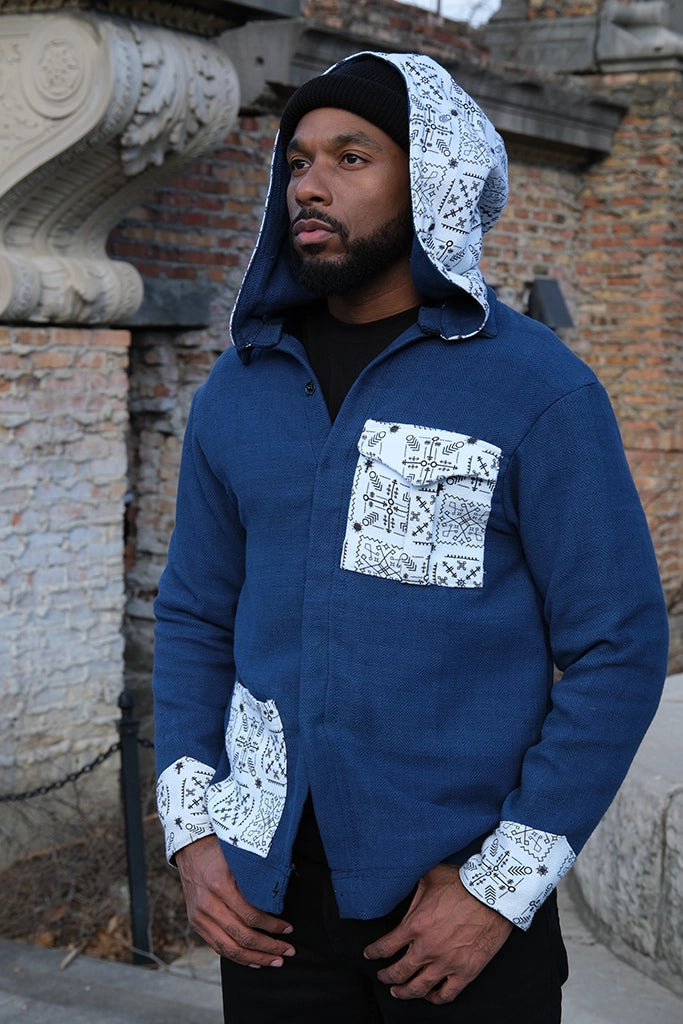 Experience true style and class with Leûl Denim Hoodie Jacket. Handmade in Ethiopia from hand woven cotton, this limited edition jacket features a traditional tatoo design, making it a unique work of art. With reactive printing and expert craftsmanship by DolMel, this jacket is truly one of a kind. Add it to your wardrobe and stand out from the crowd.