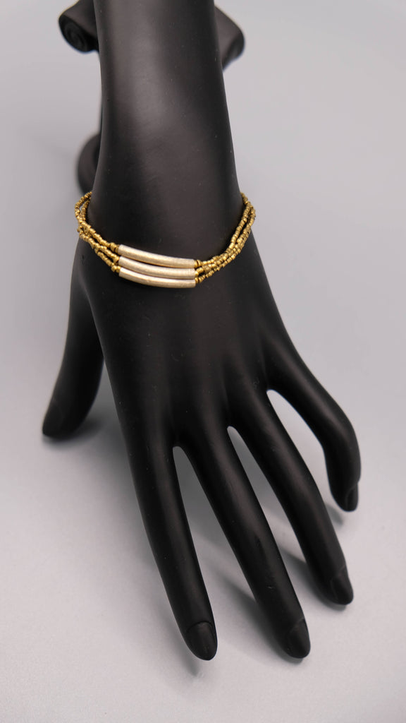 With Gulele Bracelet, you're not just wearing a layered, classy and elegant accessory. You're making a bold statement and supporting a good cause, as it is handcrafted from recycled bullets by talented women in Ethiopia. Set yourself apart and show off your adventurous spirit!