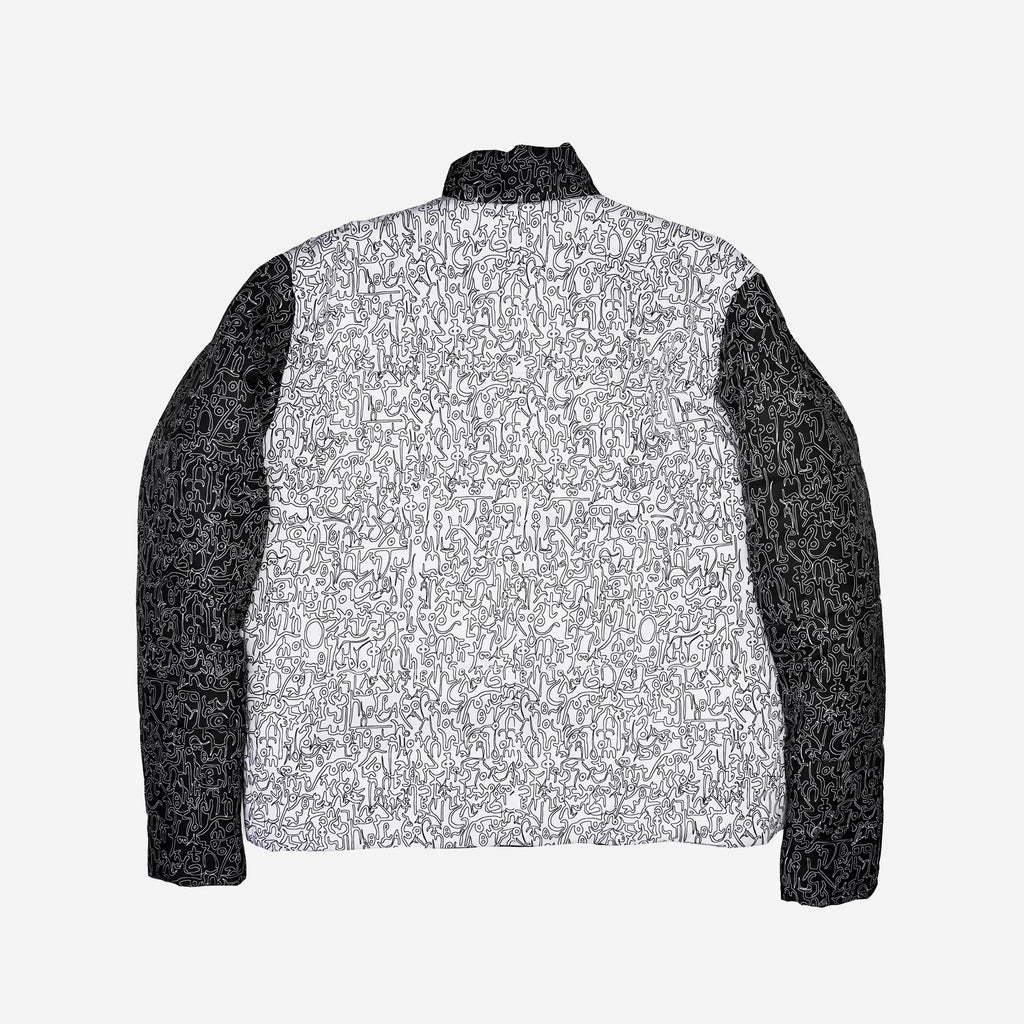 Make a statement in the stylishly warm Kal Puffer Bomber Jacket! This perfect cool weather jacket, adorned with stylish doodle art using the ancient Ethiopian Amharic alphabet, is sure to be the envy of all your friends! Handcrafted from high-quality materials, this fashion-forward jacket is sure to keep you warm, not to mention looking cool! So, strike a pose and revolutionize your wardrobe with the Kal Puffer Bomber Jacket!