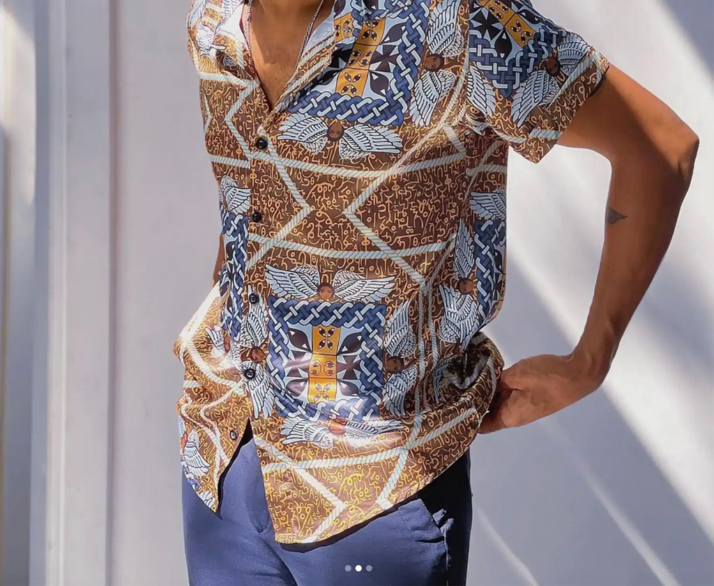 This season, you can stand out and embrace Black Excellence with the Telsem Satin Silk Shirt. Crafted with a supremely soft and luxurious satin silk in Ethiopia, this stylish shirt features traditional ancient art to express the grand Ethiopic civilization and heritage. With its mesmerizingly beautiful angelic art, this one-of-a-kind summer shirt is sure to turn heads. Wear it with pride and show the world your support for African artistry!