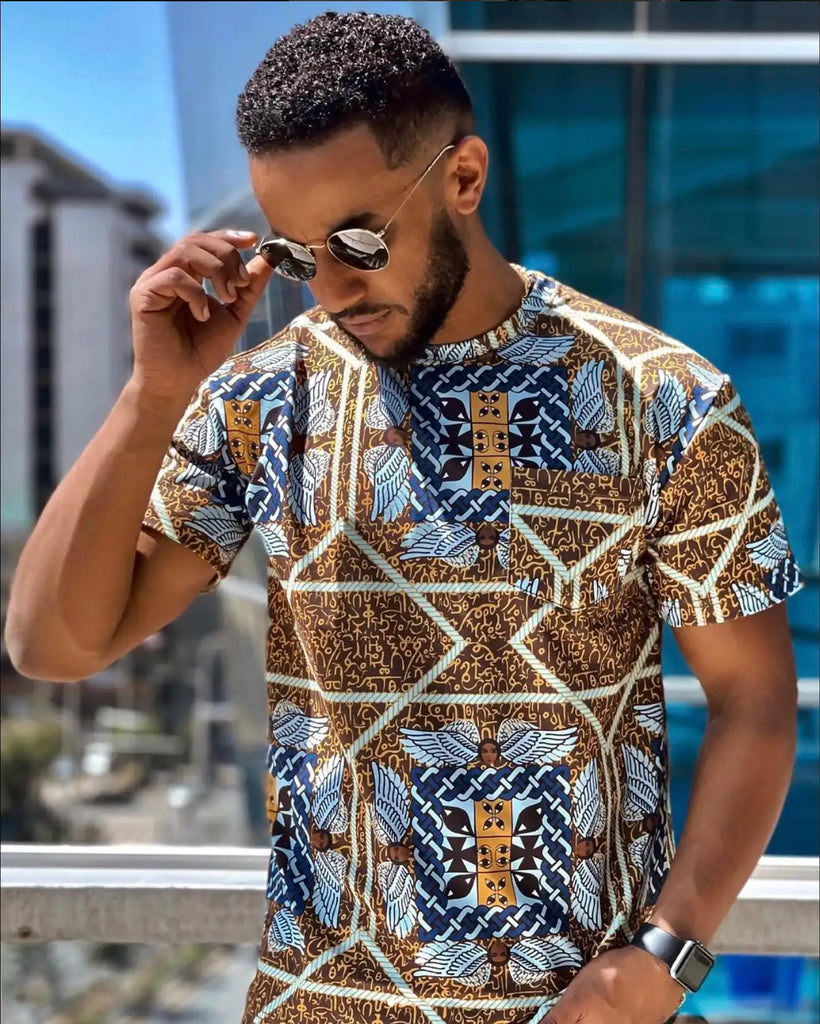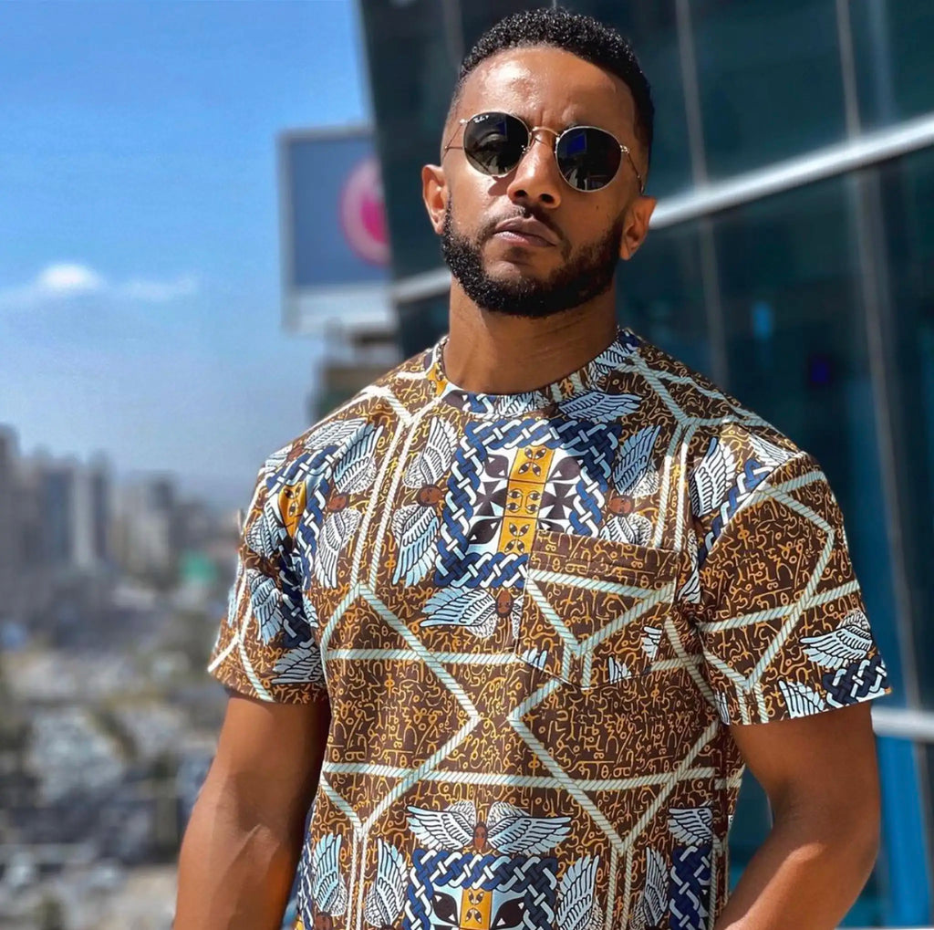 Embody Ethiopian heritage and African pride in this stylish Telsem t-shirt. Crafted with fine cotton, it's more than just a comfortable wardrobe staple; it's wearable art that expresses a bold statement of ancient civilizations, folklore, and black wisdom. Make a statement with this ethiopian-made piece, and delve into a deeper meaning.