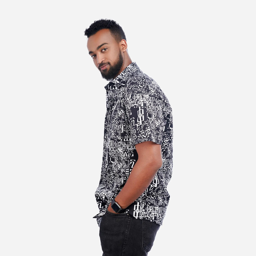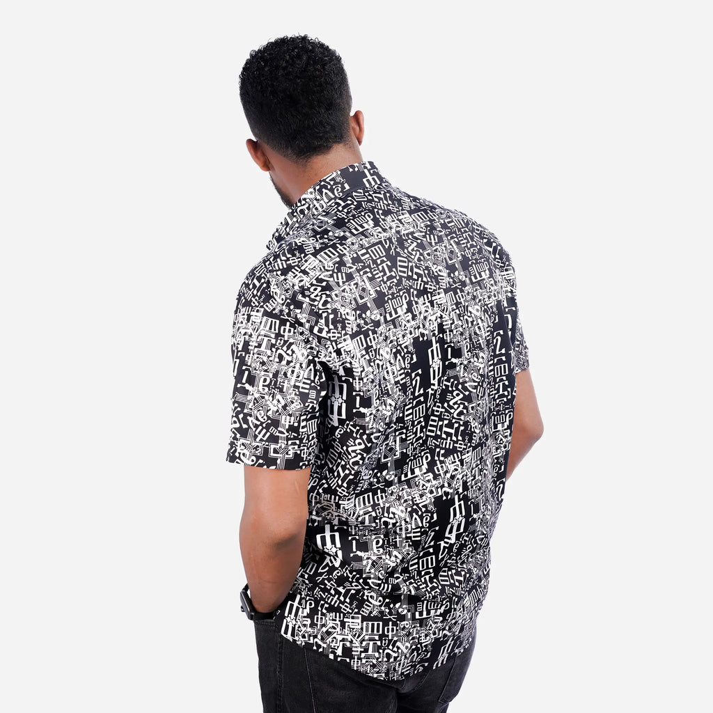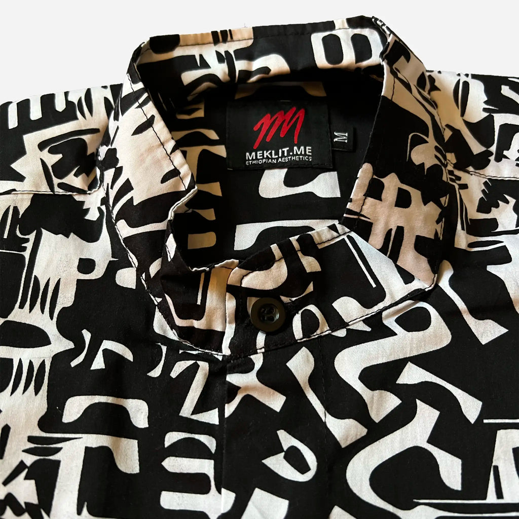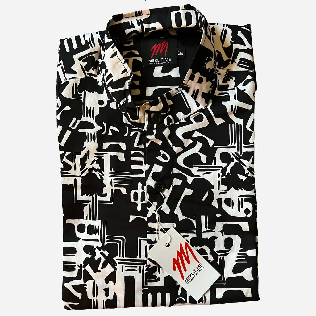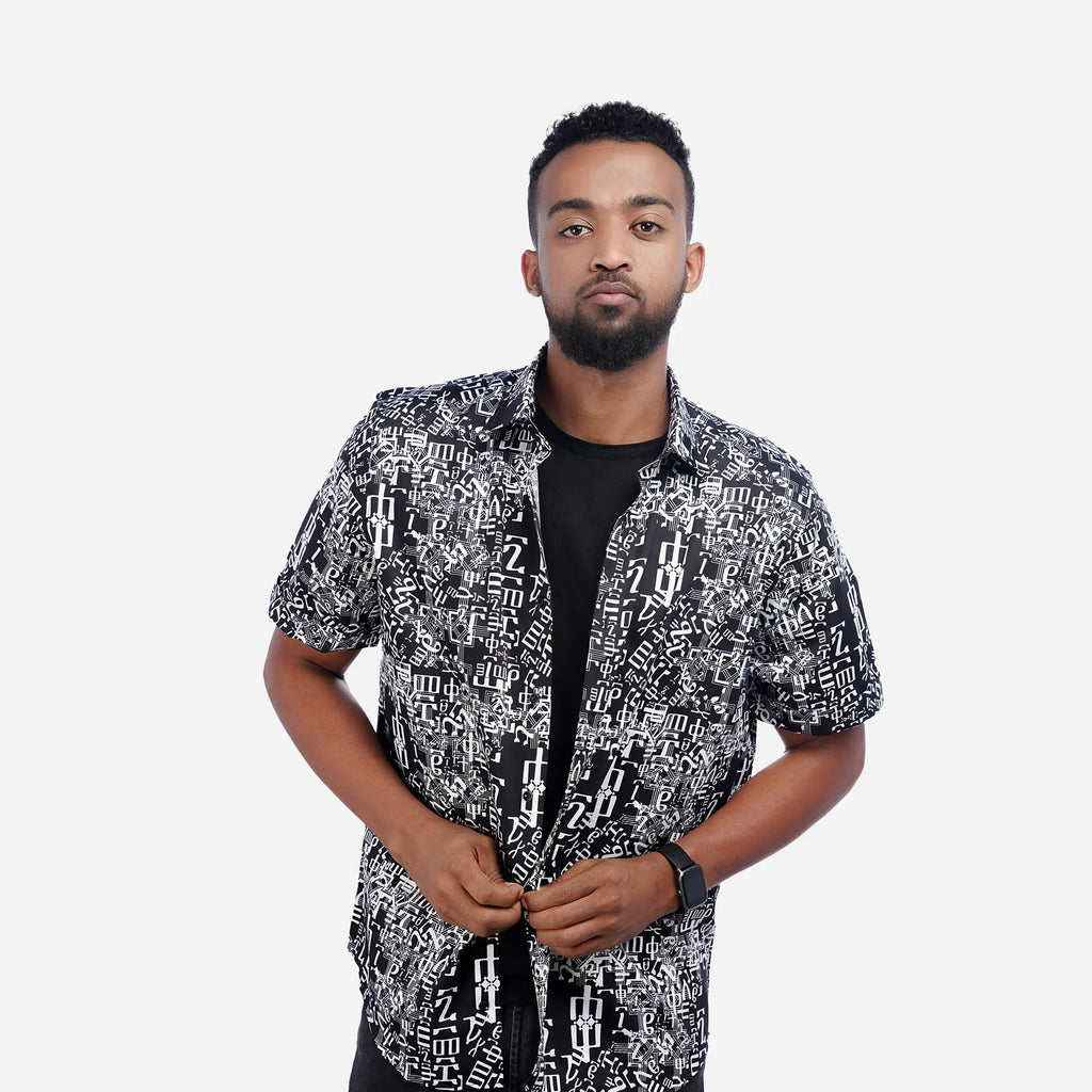 Get noticed in this unique Fidel Shirt and be a Walking Story Book! Made from 100% quality cotton in Ethiopia, and featuring the Amharic alphabet, this fashion statement will turn heads as you strut your stuff around town. Make your mark and be different with the cool and unique Fidel Shirt!