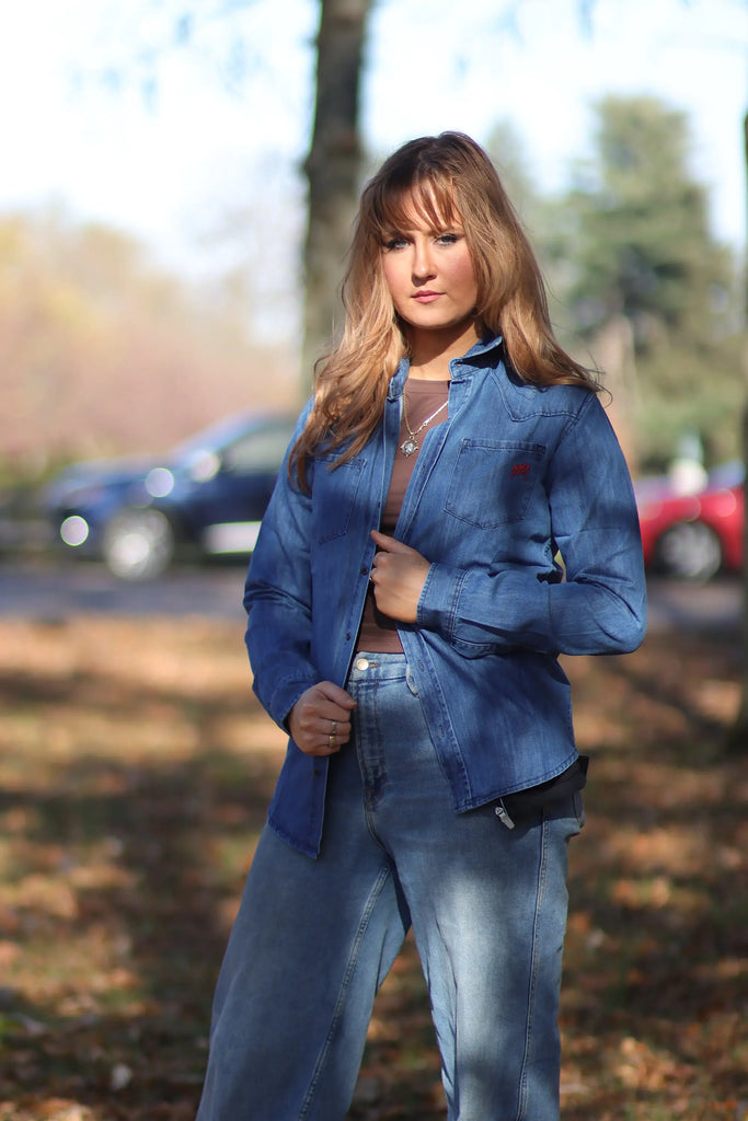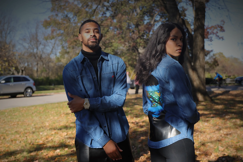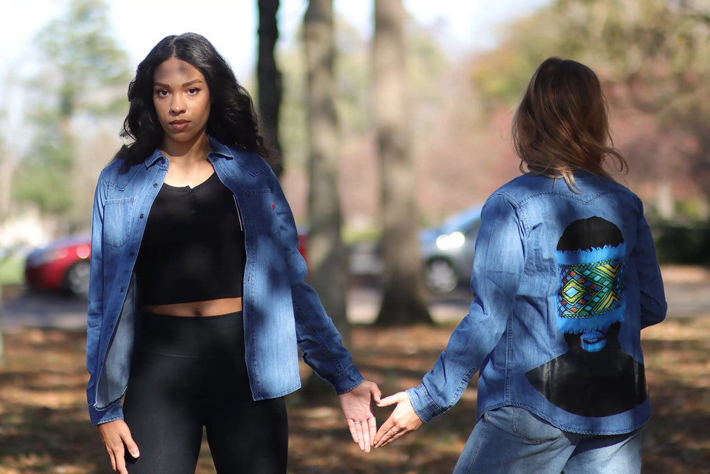This Denim Shirt boldly makes a statement with custom art from Ethiopia, making for a unique, wearable piece of art. Stand proud in a culture of black artistry and support the talented artisans of Ethiopia that crafted it. Look and feel your best with a fashion statement that truly stands out.