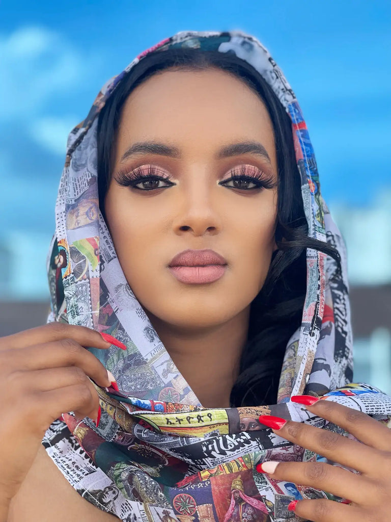 Discover Tarik, the luxurious chiffon scarf, crafted from the highest quality materials in Ethiopia. Step into history, with a vivid portrait of freedom, victory, and black pride.  Adorn yourself with Ethiopian Kings and Queens and become a part of African heritage by wearing this unique piece of artwork. Make a statement and weave your story. For lovers of dignified freedom, Tarik is a timeless accessory.