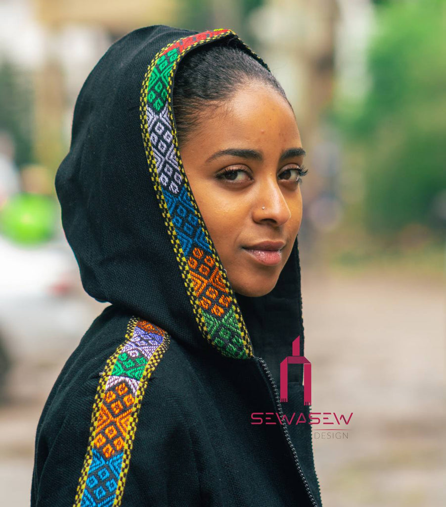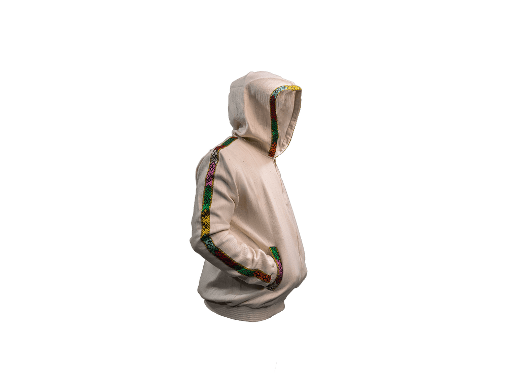Handwoven Gojam Azen (Linen) and Gabi Hoodies by Sewasew, made with exquisite tilet (patterns) and high quality linen by skilled artisans in Ethiopia. Each piece is unique, showcasing a piece of history and offering warmth and style. Stand out with this one-of-a-kind, handmade hoodie. Elevate your wardrobe with this exclusive, wearable art.