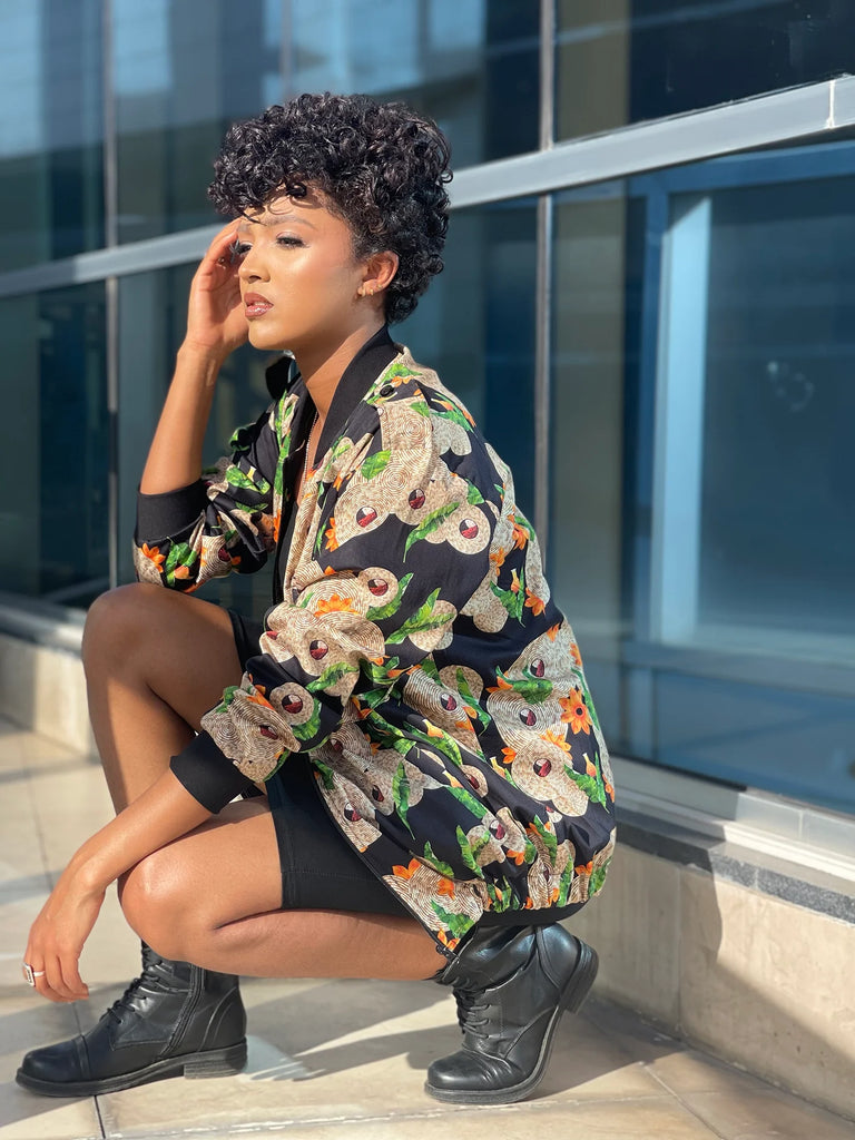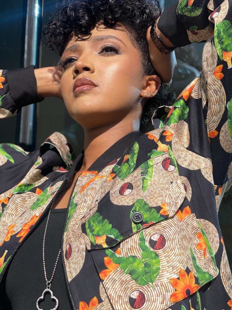 Take a leap of style with the Sefed Bomber Jacket! Designed in Ethiopia, this unique piece combines vibrant colors with the spirit of hospitality and sharing a meal. Elevate your wardrobe and embrace a bold approach to fashion.